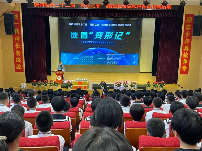 为弘扬科学精神,普及科学知识,5月6日,按照省科协部署,陕西测绘地理信息局、陕西省测绘地理信息学会联合多家会员单位共同走进西安铁一中湖滨中学开展科普进校园活动。陕西测绘地理信息局总工程师刘云峰出席并讲话,陕西省测绘地理信息学会秘书长张坤及部分会员单位领导出席活动。