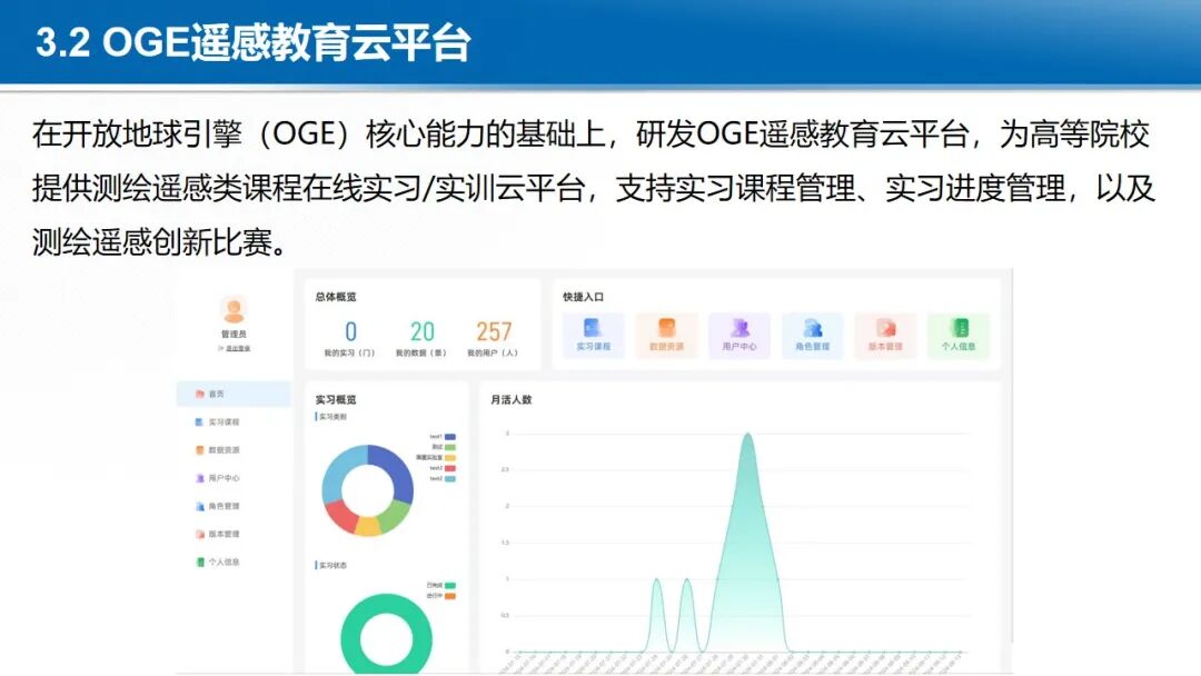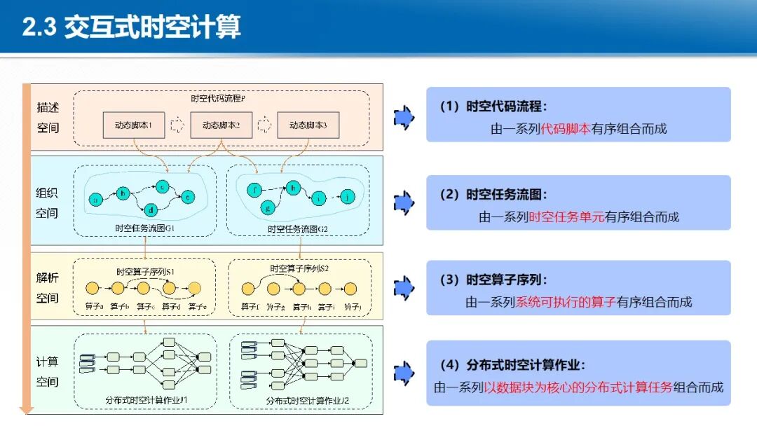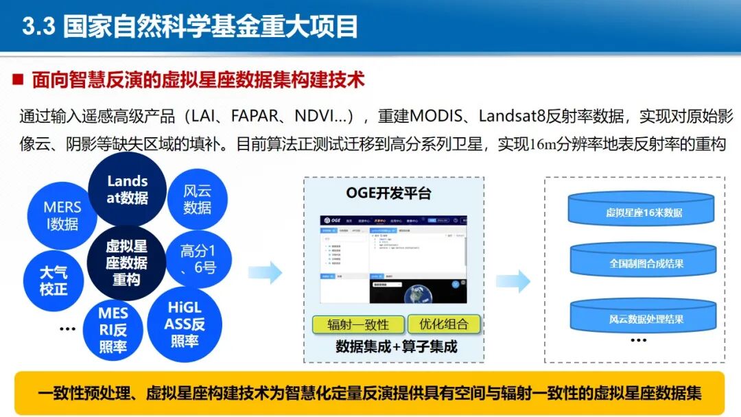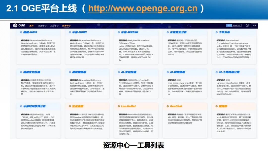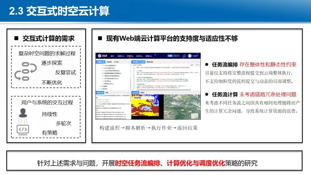 在大数据与云计算的背景下,地球时空大数据的处理范式正在发生深刻变革,各国均在积极构建新型时空信息基础设施。开放地球引擎(OGE)依托于云计算设施,以GeoCube时空立方体模型,动态汇聚与管理全球范围内的地球观测数据、数字高程模型、定量遥感产品、遥感AI样本、虚拟星座数据等多源异构时空数据。通过自适应划分和计算强度估计,实现大规模数据的负载均衡存储和复杂时空分析的负载均衡计算。基于可扩展的分布式时空计算框架,聚合地学分析领域的处理方法、分析算法与人工智能模型,从而实现了开放的数据集成、一体化的数据管理、高性能的时空计算和灵活的任务编排,提供标准化的数据就绪型、分析就绪型和决策就绪型时空信息智能服务体系。