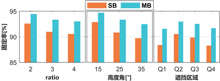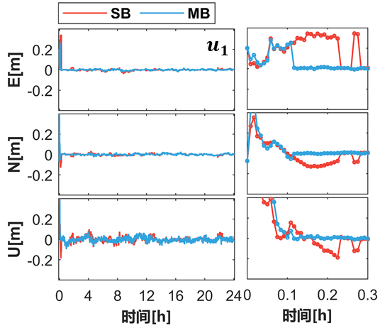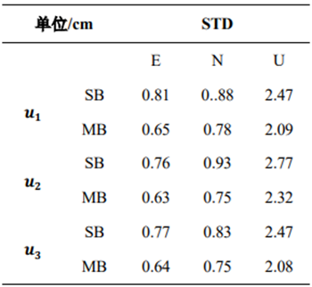 结果显示,在动态解算模式下,MB模型拥有更短的首次固定时间;SB模型的模糊度固定成功率分别为94.6%、96.8%和93.9%,MB模型分别为98.6%、98.6%和98.5%,平均提升3.5个百分点。MB模型在实际工程环境下重收敛性能优于SB模型,有助于缩短信号中断时的重收敛时间。