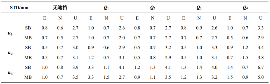 设计了一组模拟复杂遮挡环境的监测实验,并通过Bootstrapping成功率、监测精度、模糊度固定率及首次固定时间等指标验证了本文方法的有效性。