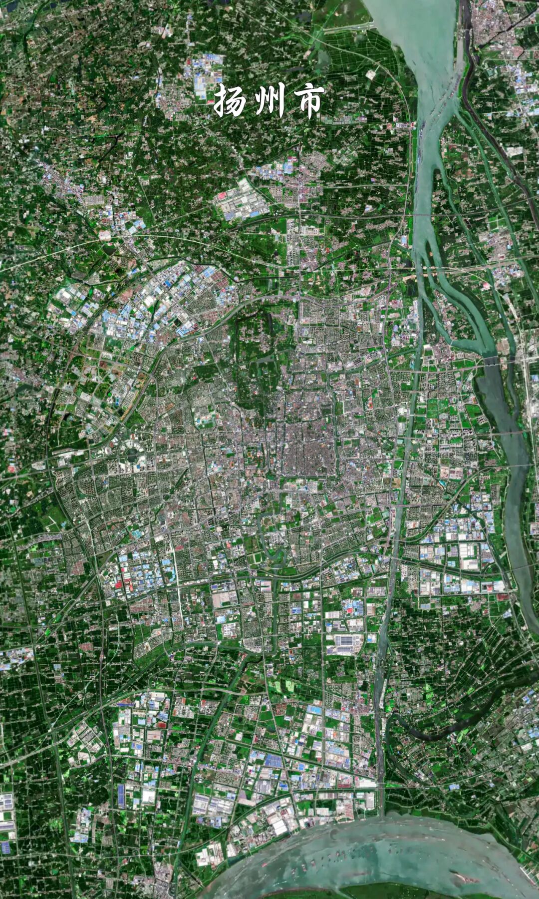 从太空俯瞰,扬州的城市脉络与水脉完美相融,完美印证了 “州” 字的造字本意——水绕城郭,川流其间。长江岸线在南舒展成玉带,京杭大运河自北向南纵穿腹地,串联起白马湖、宝应湖、高邮湖、邵伯湖四大湖泊,与廖家沟、太平河等水系呈 “川” 字形贯通全城。老城的黛瓦街巷与新城的现代路网隔河相望,规整的里坊肌理与蜿蜒的水网河道交织,一眼望去,便读懂了 “绿杨城郭是扬州” 的千古意境,也看清了这座因运河而兴、与江河共生的城市本貌。 中国保存最完好的明清古城之一,也是扬州两千五百年建城史的核心载体。卫星镜头下,5.09平方公里的古城格局完整清晰,“旧城方正、新城相拥,一水分东西” 的明清双城肌理一览无余。小秦淮河如绿带穿城而过,“四大街、八小巷、七十二条绵绵巷” 的棋盘路网与蜿蜒斜街相映,构成了 “巷连巷、巷通巷、巷套巷” 的独特街巷肌理。 世界文化遗产点,扬州最鲜明的城市名片,被誉为 “园林之盛,甲于天下”。卫星视角下,瘦西湖如一条蜿蜒的翡翠丝带,自北向南舒展在蜀冈南麓,串联起二十四桥、五亭桥、白塔、徐园、小金山等一众景致,完美诠释了 “两岸花柳全依水,一路楼台直到山” 的盛景。不同于北方园林的恢弘,也异于苏州园林的内敛,这片湖上园林将山水、建筑与诗文完美相融,从云端俯瞰,步步皆景、处处入诗,是江南园林美学最灵动的传世范本。 世界文化遗产核心段,也是中国大运河的地理与文化地标,公元前486年,大运河的第一锹土就在这里落下。卫星镜头下,古运河在这里蜿蜒折转,形成了独特的 “三湾抵一闸” 的水利格局,这是中国古代河工智慧的巅峰之作。河道两岸湿地连绵、绿意盎然,标志性的中国大运河博物馆如一艘巨型帆船,停泊在运河之畔,与千年运河形成了跨越时空的对话。这段河道不仅见证了大运河两千五百年的兴衰流变,更书写了新时代生态与文化共生的运河新篇。 这里是京杭大运河汇入长江的最终节点,也是中国诗词史上最著名的古渡之一。卫星俯瞰之下,长江与京杭大运河在这里形成了独一无二的 “十字黄金水道”,六圩河口的灯塔静静伫立,江面开阔浩渺,运河如银线自北而来,奔涌入江。“京口瓜洲一水间”,王安石在这里写下春风又绿江南岸的千古名句,杜十娘在这里留下沉箱的传奇,千年以来,这里既是南北漕运的咽喉要道,也是文人墨客的抒怀之地,一湾古渡,藏着半部唐诗宋词的江南烟雨。