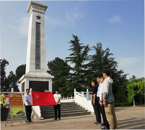 在庄严肃穆的荔北战役烈士陵园,参加活动的全体党员对高耸的荔北战役烈士纪念碑默哀致礼,并高举右手,面对鲜红的党旗,集体重温入党誓词。随后,全体党员在陵园工作人员的带领下参观了荔北战役纪念馆。