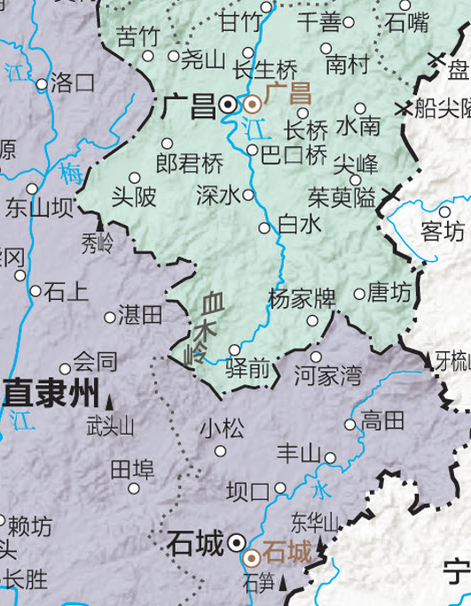 杨家牌位于江西广昌与石城交界处,是太平天国运动的终结之地。同治三年(1864年),洪秀全病逝后,洪秀全之子幼主即位,称幼天王。后随洪仁等辗转江西,在杨家牌为清军所袭,被俘。1个月后,幼天王在南昌殉难。至此,太平天国运动失败。江西图选取了杨家牌这一重要历史事件发生地加以标注。 图/《清史地图集》