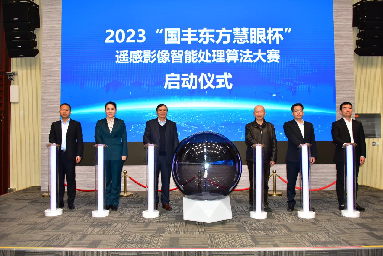 何杰、龚健雅、姜丹,烟台国丰投资控股集团有限公司副总经理刘志军,航天宏图信息技术股份有限公司廖通逵总经理、中国电建集团山东电力建设第一工程有限公司青岛公司总经理马先秋作为启动仪式嘉宾共同点亮了象征2023年度赛事的灯球。