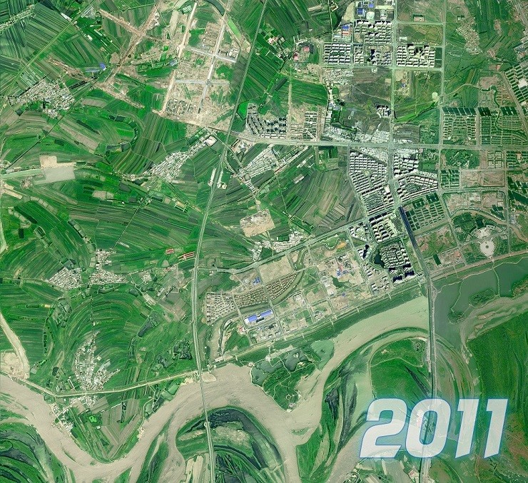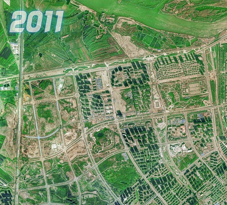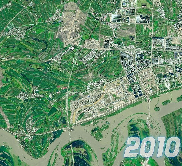 2010年、2011年、2017年、2021年松花江北岸变化: