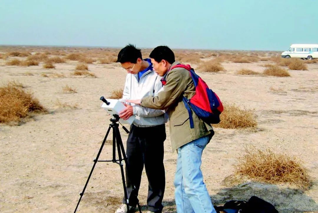 ·顾行发(右)在河北怀来遥感综合试验站作业。