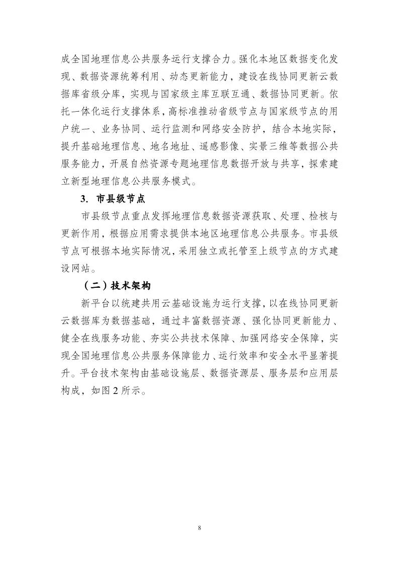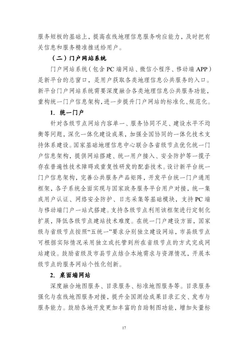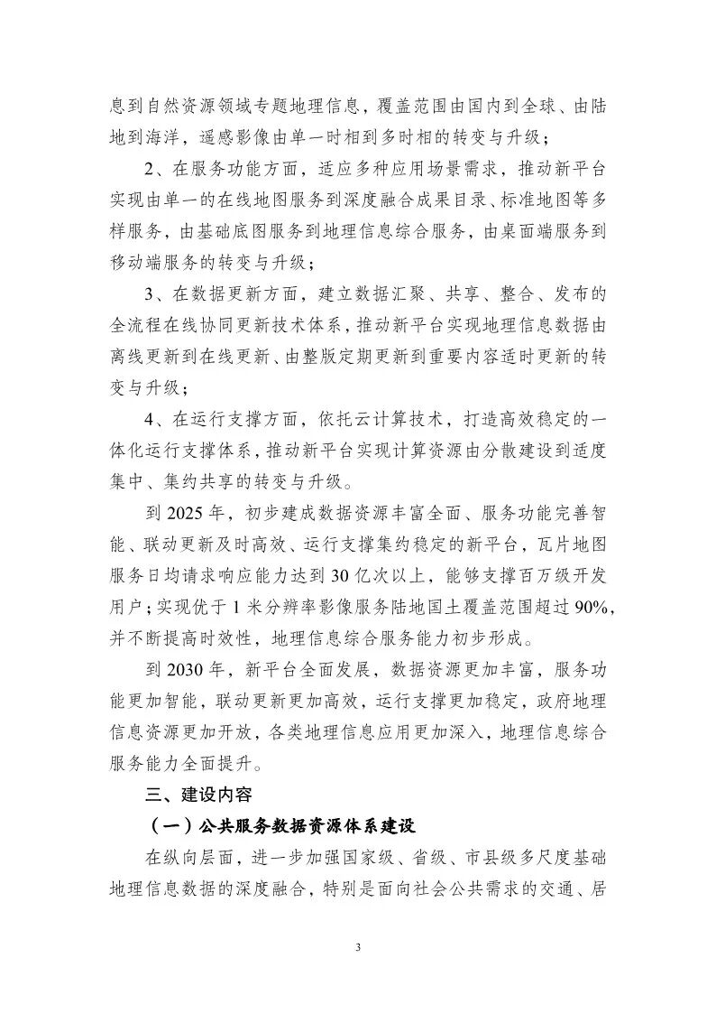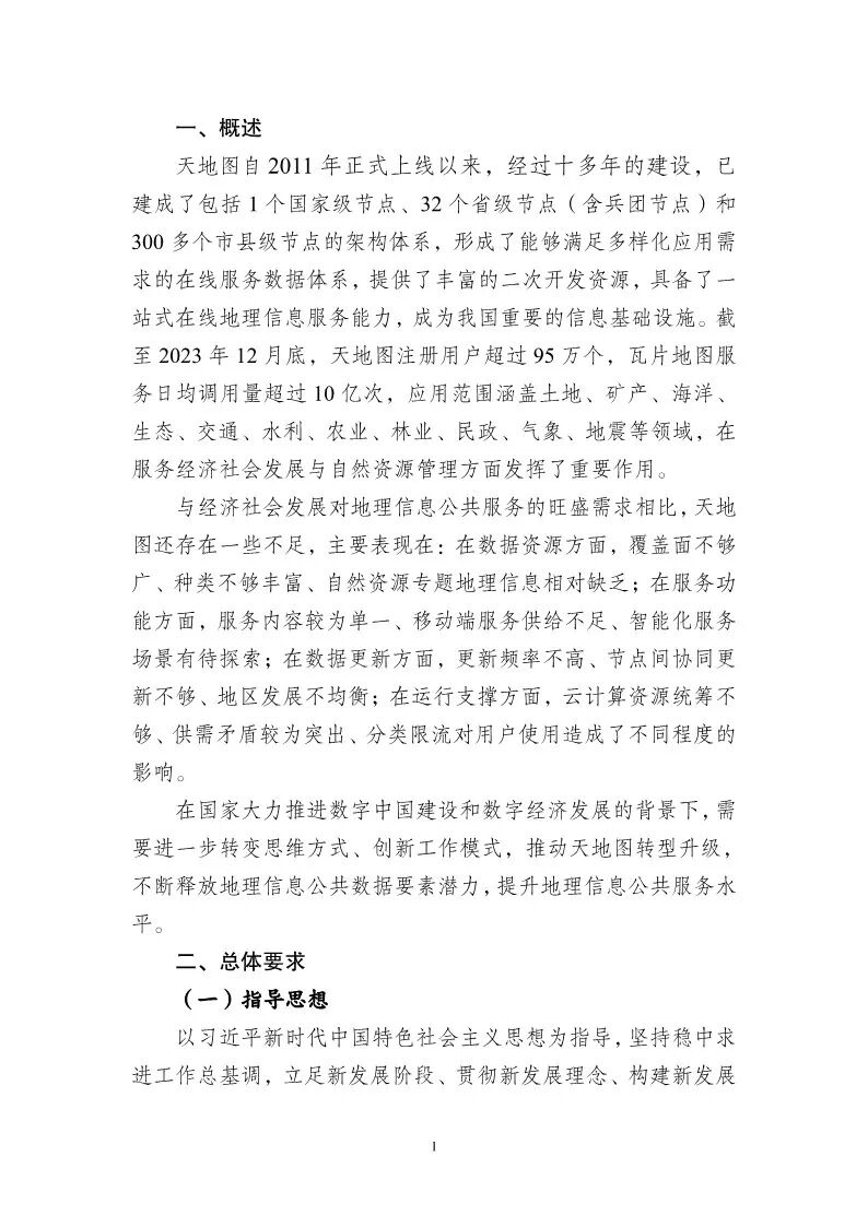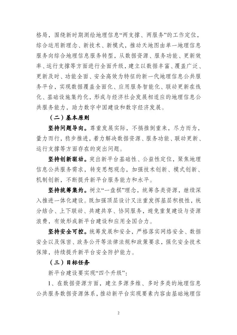 为贯彻落实《自然资源部关于加快测绘地理信息事业转型升级 更好支撑高质量发展的意见》(自然资发〔2023〕158号)部署要求,加快推进新一代地理信息公共服务平台(以下简称新平台)建设,在前期试点工作基础上,我部组织编制了《新一代地理信息公共服务平台(天地图)建设总体实施方案》,现印发给你们,并就有关事项通知如下: