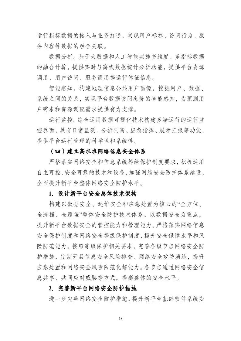 各地各单位要高度重视新平台建设工作,研究制定配套措施和具体落实方案,认真落实有关数据安全保密规定,加大经费保障力度,所需经费按规定纳入财政预算。积极拓宽资金渠道,统筹运用各类资金,提高资金使用效率,加大技术升级、数据更新、系统建设、应用拓展、日常运维等经费保障力度。加强人才培养,建立适应新平台建设与应用的高水平人才队伍。鼓励联合高等院校、科研机构、企事业单位等开展技术攻关,鼓励企业参与新平台建设和增值开发,积极探索建立商业化合作机制。坚持边建边用,关注社会反响,注重宣传推广,不断提升知晓度,引导用户规范使用新平台。