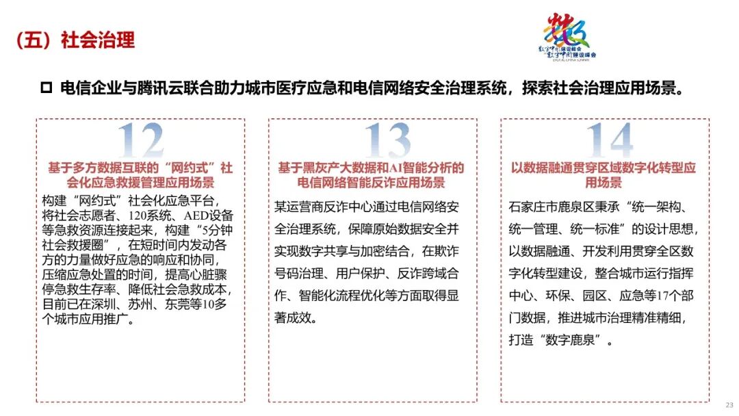 三是数据要素在社会治理领域发展空间广阔。比如,我国社会应急心脏骤停疾病急救存在成功率低、成本高、救援供需信息不畅等问题。腾讯依托连接优势,构建了“网约式”社会应急平台,将志愿者、120系统、AED设备等急救资源连接起来,构建“5分钟社会救援圈”。目前已在深圳、苏州等10多个城市应用推广,示范点内旁观者心肺复苏(CPR)实施率从20.5%提升至45%,存活出院率提升至25%。(我国存活出院率为1.2%左右)