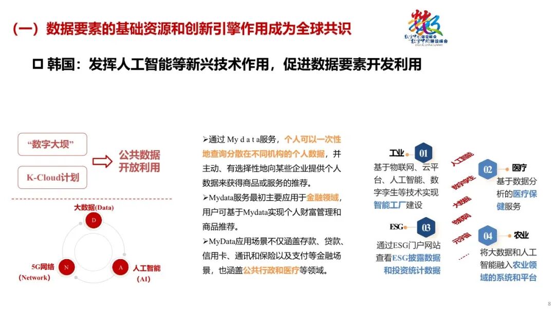 首先,报告总结了美欧日韩各国的数据要素发展情况。主要做法包括:鼓励政府数据开发利用、鼓励市场主体应用创新、加快布局数据基础设施、鼓励数据可信流通、重视发挥人工智能等新兴技术对于数据要素和数字经济的带动作用。这些国际经验对我国数据要素制度建设具有借鉴和参考意义。