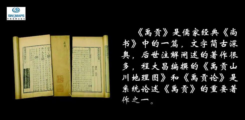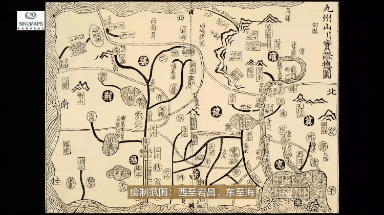采用古代地图传统形象画法,将《禹贡》中山、河、湖、海及九州界域等与宋代的现势情况进行对比,并有考释性内容的文字注记。