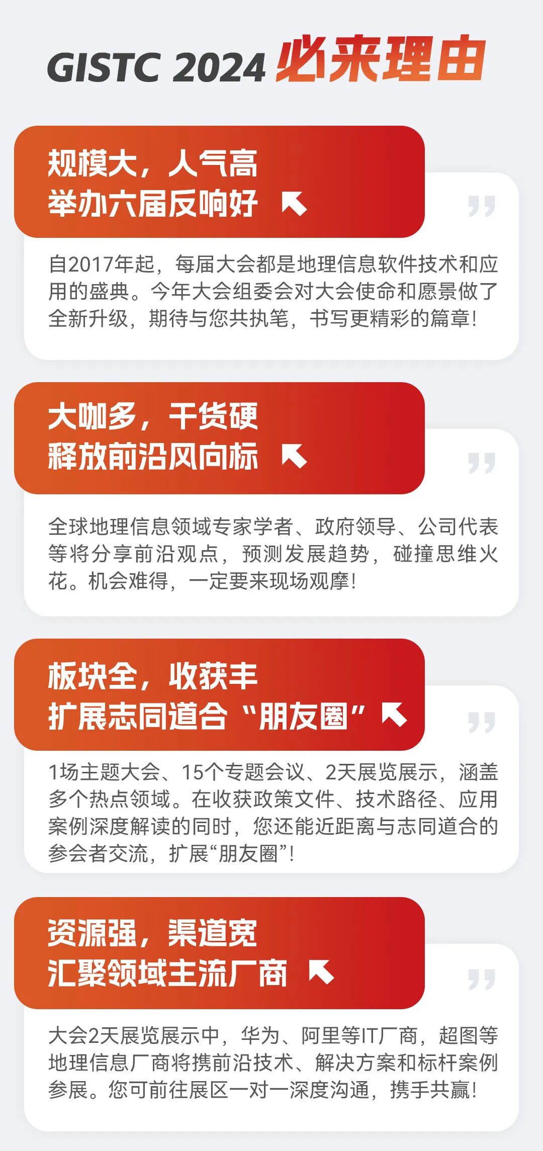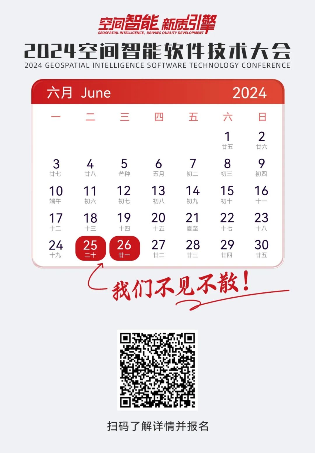 “2024空间智能软件技术大会”是“2023地理信息软件技术大会”的全新升级,以“分享空间智能软件最新进展,交流空间智能应用最佳实践”为使命,以“打造全球规模最大、最具影响力的空间智能软件技术类大会”为愿景。大会自2017年开始举办,迄今已经成功举办六届,每届有来自全球的数十万名嘉宾参与线下、线上会议。