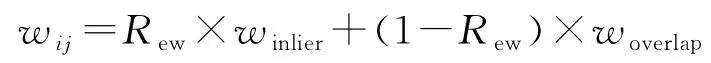 式中,winlier和woverlap根据特征匹配点数量及其覆盖区计算;Rew控制两者权重。因此,wij是winlier和woverlap的线性加权,其计算方法见式(5)—式(6)