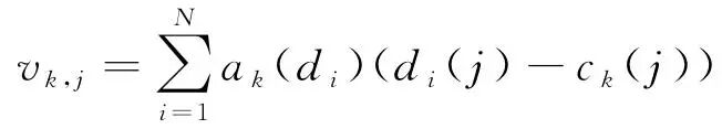 式中,j是特征描述子维度索引,j=1,2,…,d;ak(di)是指示函数,当特征di包含在单词ck内时,ak(di)=1,否则,ak(di)=0。基于上述编码,k个单词组成的编码本C可将影像表示为k×d维的VLAD特征向量。