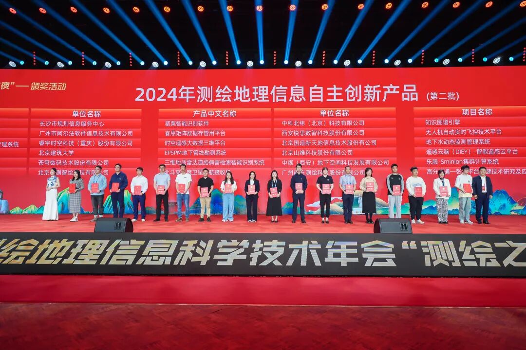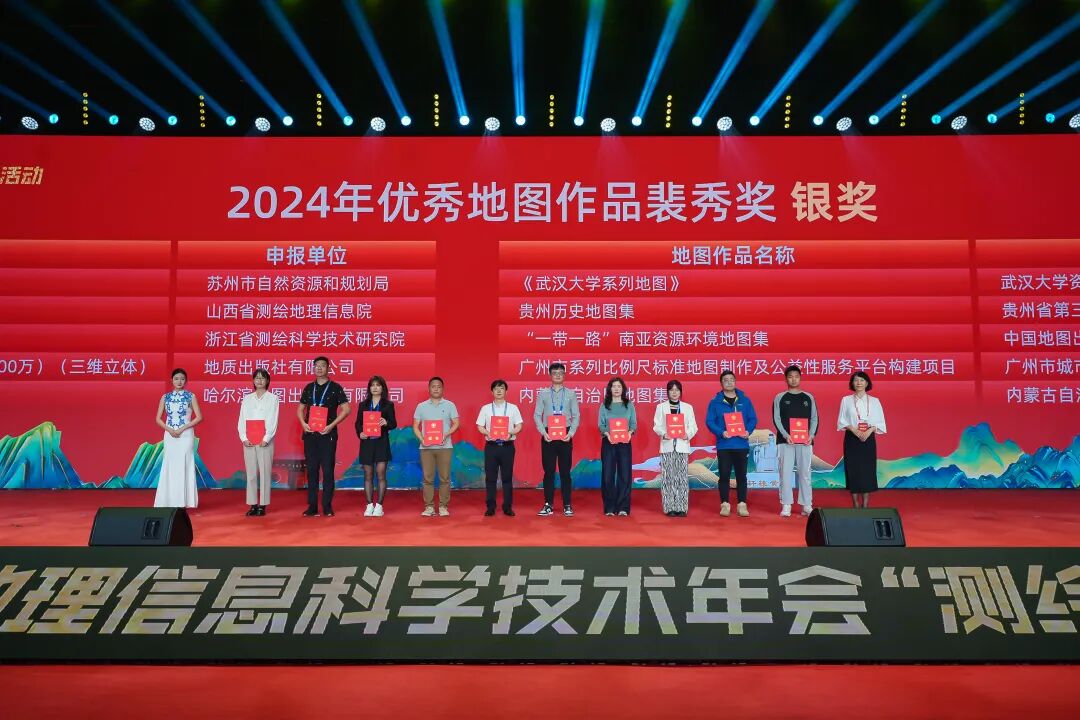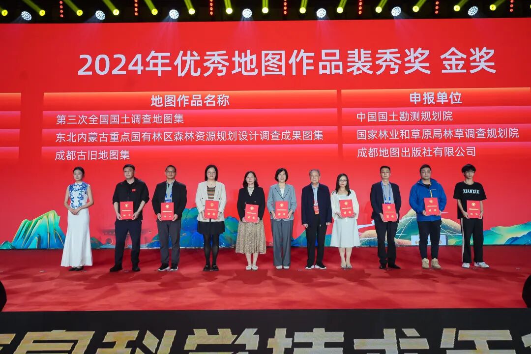 大会表彰了2024年度优秀地图作品裴秀奖、优秀测绘工程奖、测绘地理信息科技创新型优秀单位奖、夏坚白测绘事业创业与科技创新奖和测绘地理信息自主创新产品,并向获奖者颁奖。