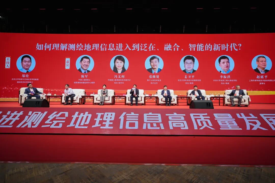“如何理解测绘地理信息进入到泛在、融合、智能的新时代”为主题的科技与产业发展沙龙更是将今天的会议推向高潮,在国际欧亚科学院院士、北京大学邬伦教授主持下,陈军院士、中国国土勘测规划院院长、党委书记冯文利、莫干山地信实验室执行主任张继贤、武汉大学科学技术发展研究院院长姜卫平、长安大学地质工程与测绘学院院长李振洪和上海华测导航技术股份有限公司董事长赵延平进行了专业研讨互动,让在场的观众直呼过瘾。