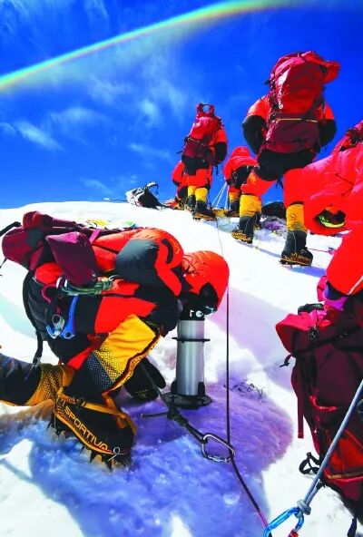 5月27日凌晨,8名队员咬紧牙关,从海拔8300米的营地一步步向峰顶挺进。冲顶最后短短1.4公里,大家攀爬了足足9个小时,最终登顶地球之巅。8848.86米,让世界再次见证了中国新高度!