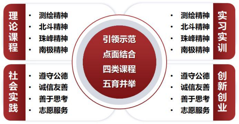(一)挖掘智能化测绘思政元素,将“四种精神”有机融入专业课程,实现课程思政全覆盖,提高学生的专业认同感与学习动力