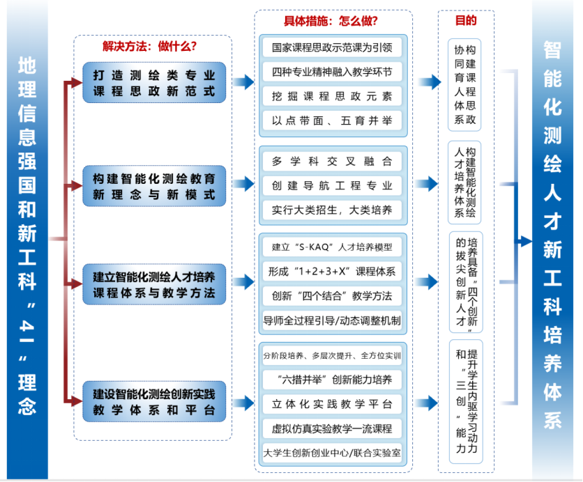 (一)理念与定位创新:提出以科技强国精神为内驱力、以新工科“4I”理念为指导、以地理信息强国人才培养为目标的智能化测绘办学理念和发展定位