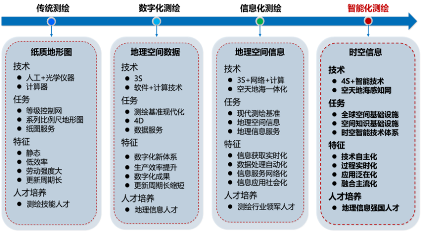 智能化测绘是地理空间信息与空间技术、观测技术、数据科学等学科交叉融合的创新发展,专业内涵从“数据-信息”发展到“数据-信息-知识-决策”,以“111计划”强化国际化培养,以“校企协同、科研与大创融合”强化新技术学习能力培养,实现从“测绘行业领军人才培养”发展到“地理信息强国的国际化人才培养”的定位转变。