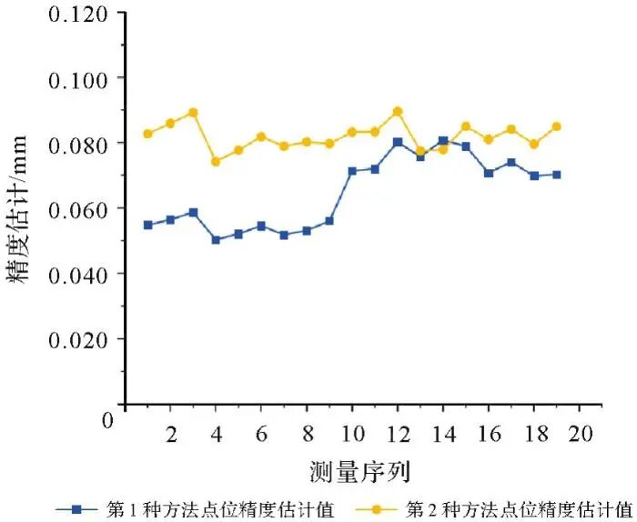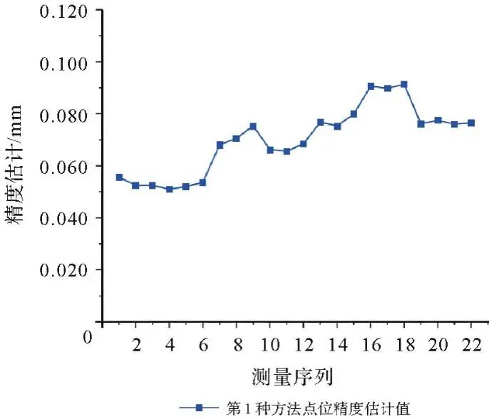 通过复测发现,标准尺长度偏差的绝对值平均为0.031 mm,标准偏差为0.029 mm,标准尺长度偏差值未超过0.080 mm,第1种方法能够准确反映测量场的精度,其评定结果可靠。