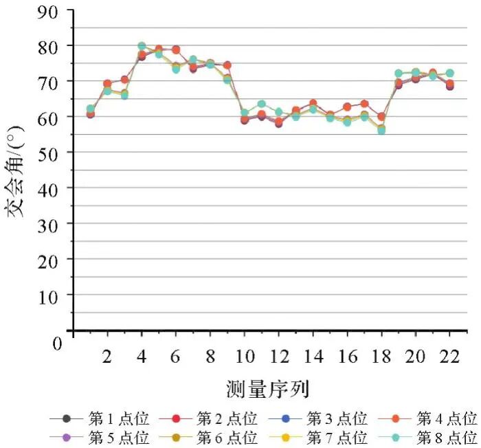 图17 3.6 m基线条件下各测量位置靶标点交会角