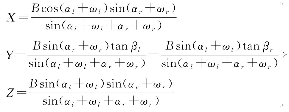 通过数学模型发现,αr+ωr和αl+ωl表示测量点与基线的水平夹角,令