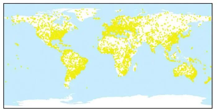 以公开的10 m土地利用覆盖数据为参考,根据语义丰富程度兼顾样本均衡性,城区、农田、湿地、森林、水域数据集比例约为6∶1∶1∶1∶1,同时适量采集荒漠、冰雪、草原、云4类数据集。根据各国人口比例,城区中,欧洲、亚洲、北美洲的采样数量是非洲、大洋洲、南美洲的2倍。由此,在全球范围内采集了约450万组遥感影像,结合公开预训练数据集如TOV_RS等,最终构建了约600万张512×512尺寸影像的大规模遥感自监督预训练数据集,全球样本采集分布如图8所示,部分数据集见https://github.com/SathShen/PerA。