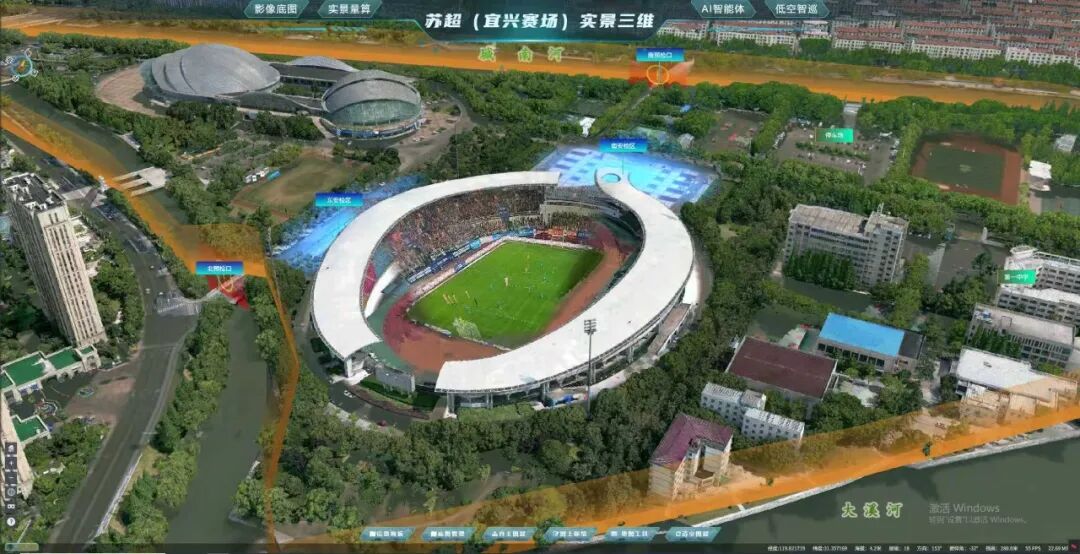4月11日晚,2026年苏超联赛无锡队主场赛事在宜兴市体育中心火热开赛,24067名观众冒雨观战。为全力保障赛事安全有序,无锡、宜兴两级自然资源部门与公安部门紧密协作,首次将实景三维技术应用于大型足球赛事安保,融合低空无人机与地面监控视频,成功构建了“及时感知、立体可视、协同预警”的智慧安保新模式,为赛事顺利举办提供了坚实自然资源科技支撑。