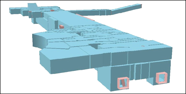 地下构筑物泛指位于地下、不包含地下管线的各类人工构筑(建筑)。其数据建设涉及普通地下室、民防工程、城市快速道路、轨道交通、快速道路、越江隧道、地下综合管廊等。从技术可行性和经济代价综合考虑,地下建构筑物数据建设主要采用依据地下建(构)筑物竣工图纸建立三维模型的方式实施。数据内容主要涉及空间位置、形态、地址、权属单位管理使用单位等。平台模型采用自主专利的数据格式,结合管线和地质数据进行整体分析,结合BIM数据应用拓展。