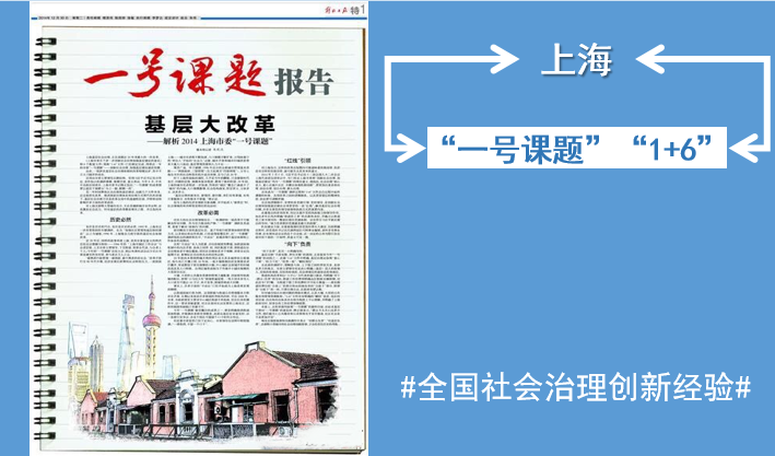 2014年底,上海市推出“一号课题”,开展基层体制改革,形成“1+6”系列文件,让这个国际大都市在创新社会治理方面,交出一份亮眼答卷。其中,“1”是中共上海市委、市政府发布的《关于进一步创新社会治理加强基层建设的意见》,“6”是涉及街道体制改革、居民区治理体系完善、村级治理体系完善、网格化管理、社会力量参与、社区工作者的6个配套文件。方案将“重心下移,资源下沉,权力下放”,让基层发挥出真正实效。