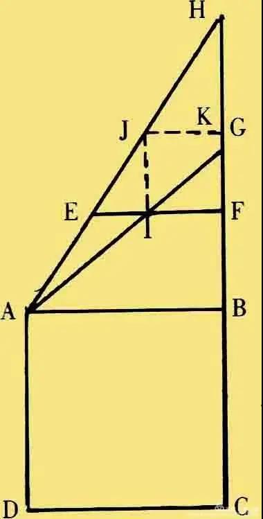 刘徽创造重差测量体系,源于数学家赵爽的日高图的启发。赵爽是三国时期的吴国人,以注释《周髀算经》而闻名。据考证,《周髀算经》记述了西汉及其以前的数学成果,其中以西周数学家商高关于勾股定理的论述以及“用矩之道”最为著名。说明先秦时期,直接测量的勾股术已经广泛应用了。赵爽对勾股定理注释:“勾股各自乘,并之为弦实(面积),开方除之即弦。”并根据勾股术演绎出著名的《日高图》。《日高图》实际上是测量太阳高度的图解,即使用两根表杆(AC、EG)前后观测,目的是构建两个相似直角三角形,并根据直角相似三角形是边角关系和测量数据推算太阳的高度。这种方法被称为重差法。重差是两次立杆测量所构建的两个相似直角三角的比例项。