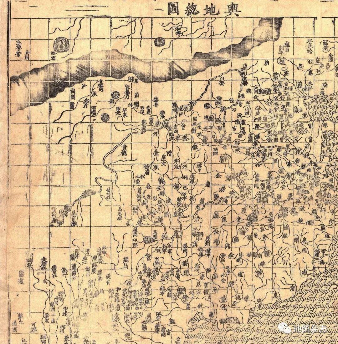 明嘉靖刻本《广舆图》“舆地总图”(局部)