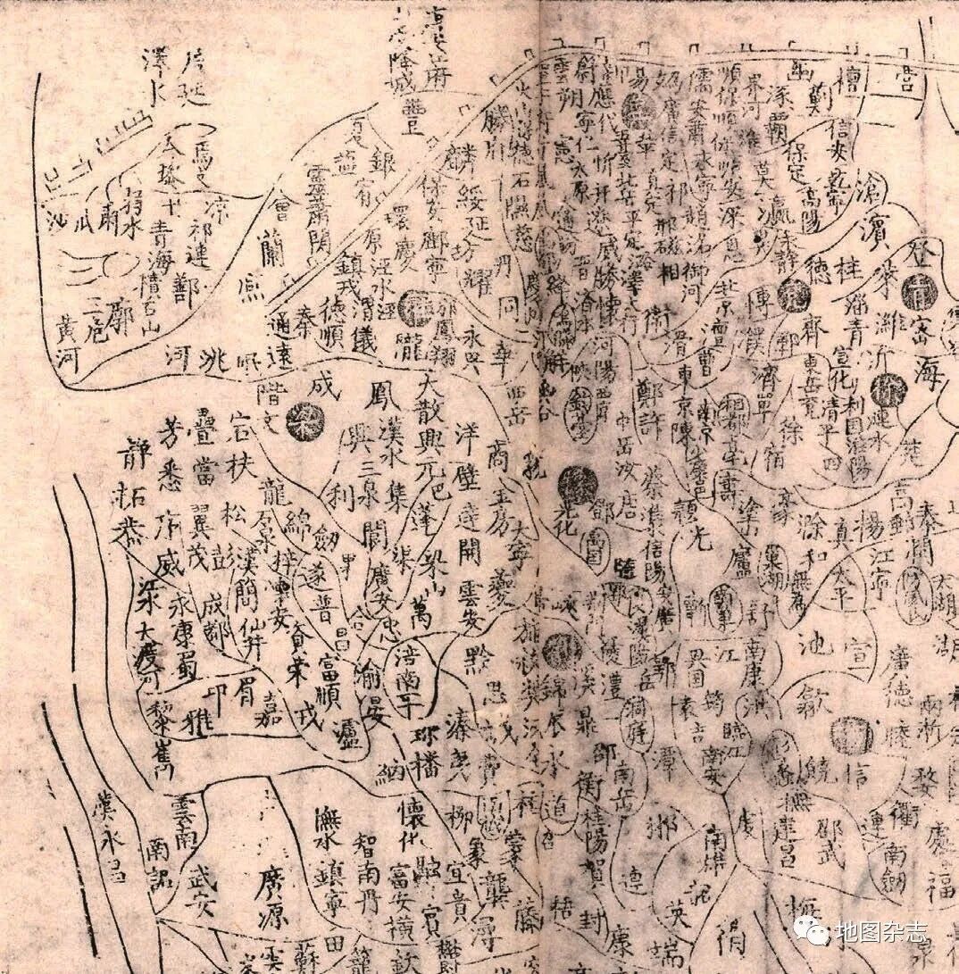 之所以出现这种情况,主要是印刷术造成的地图绘制与传播媒介的变化。在木板、丝帛甚至石头依然被用来绘制地图的同时,纸张则成为承载地图的主要媒介。印刷术实现了高效率的复制和激增的地图数量,因此那些单幅印刷或者印在书籍中的地图,不仅留存到后世的几率增加了,而且流传范围也扩大了很多。正因为如此,我们才能在宋代之后的古籍中看到大量地图被反复地长时间地使用。