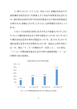 年测绘地理信息类专利申请数量为 1477 件,而 2016 至 2017 年