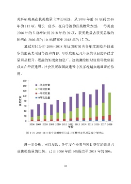 关科研成果在获奖数量上增长明显,从 2006 年的 46 项到 2018