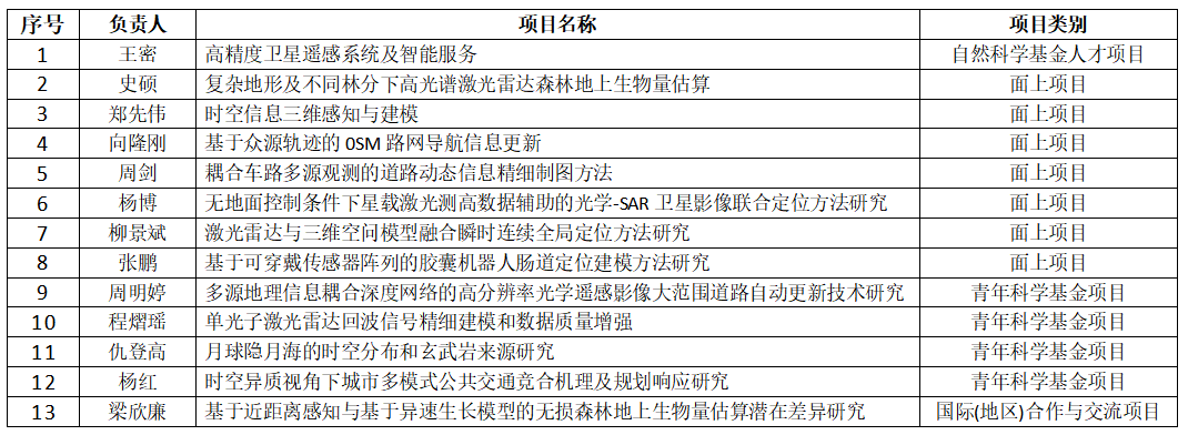 测绘遥感信息工程国家重点实验室2024年国家自然科学基金获批项目