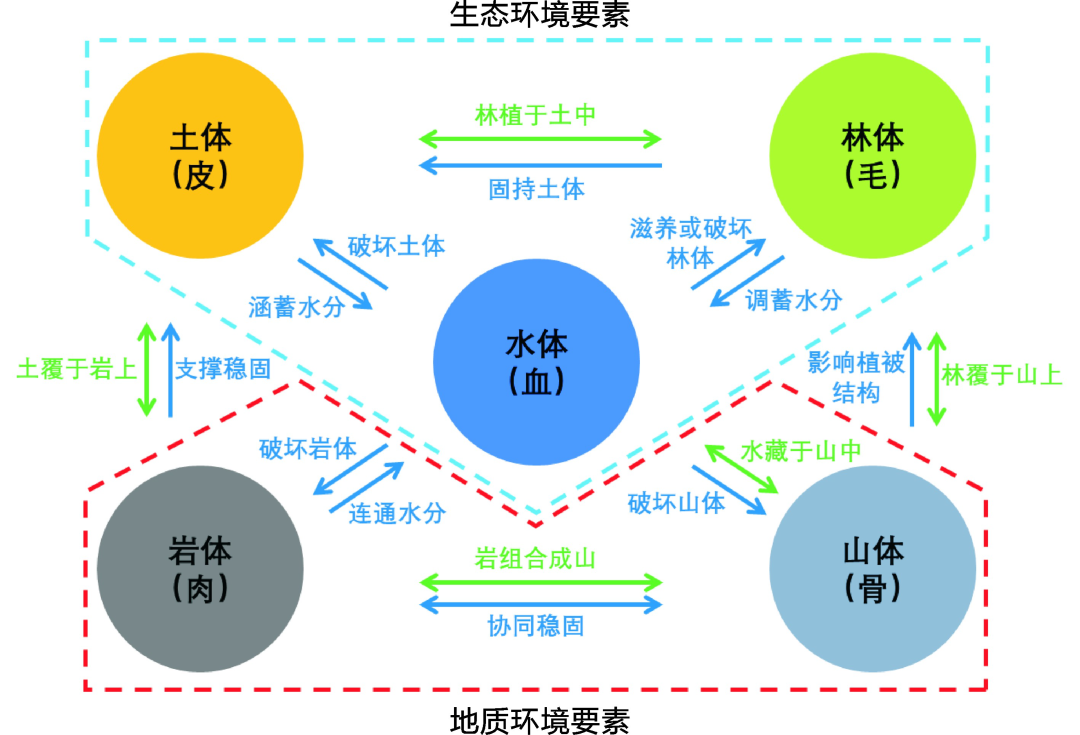 图10 水体-林体-土体-岩体-山体等五体互馈关系